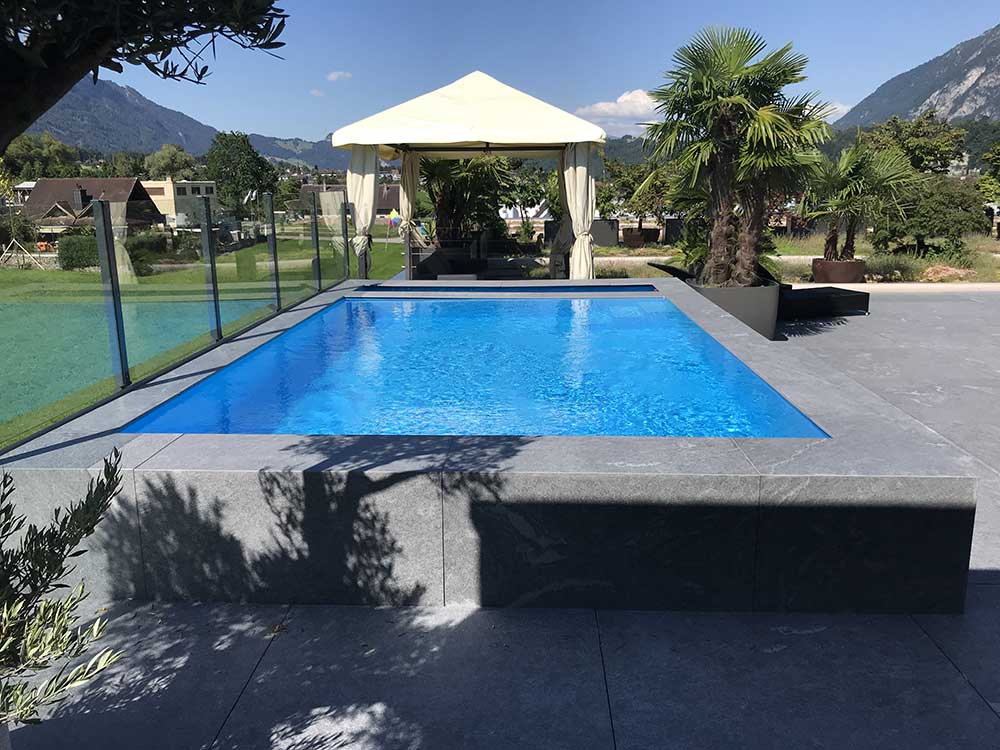 This product is ideal for outdoor pool flooring because it has high solar reflectivity and is non-slip. It is also resistant to stains, mold, bacteria, and acids; it is easy to clean and requires no maintenance.