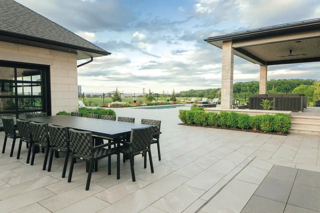 This material stands out for its extraordinary resistance and versatility, making it the ideal choice for high-end projects. The outdoor surfaces, including the pool and solarium areas, were created with 2 cm thick slabs, perfect for ensuring durability and safety in any weather conditions.